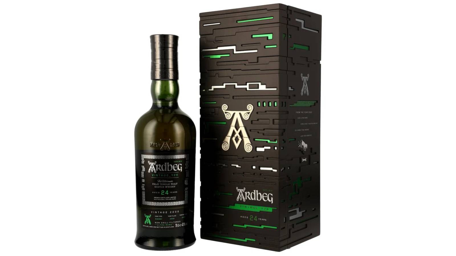 The series debuted in 2024 with the 94-point Ardbeg Vintage Y2K 23-year-old, aged in bourbon and oloroso sherry casks, featuring packaging inspired by glitchy computer screens reflecting Y2K anxieties.